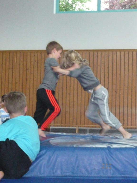Das Spiel funktioniert so: Man muss versuchen den anderen von der Matte zu schubsen.