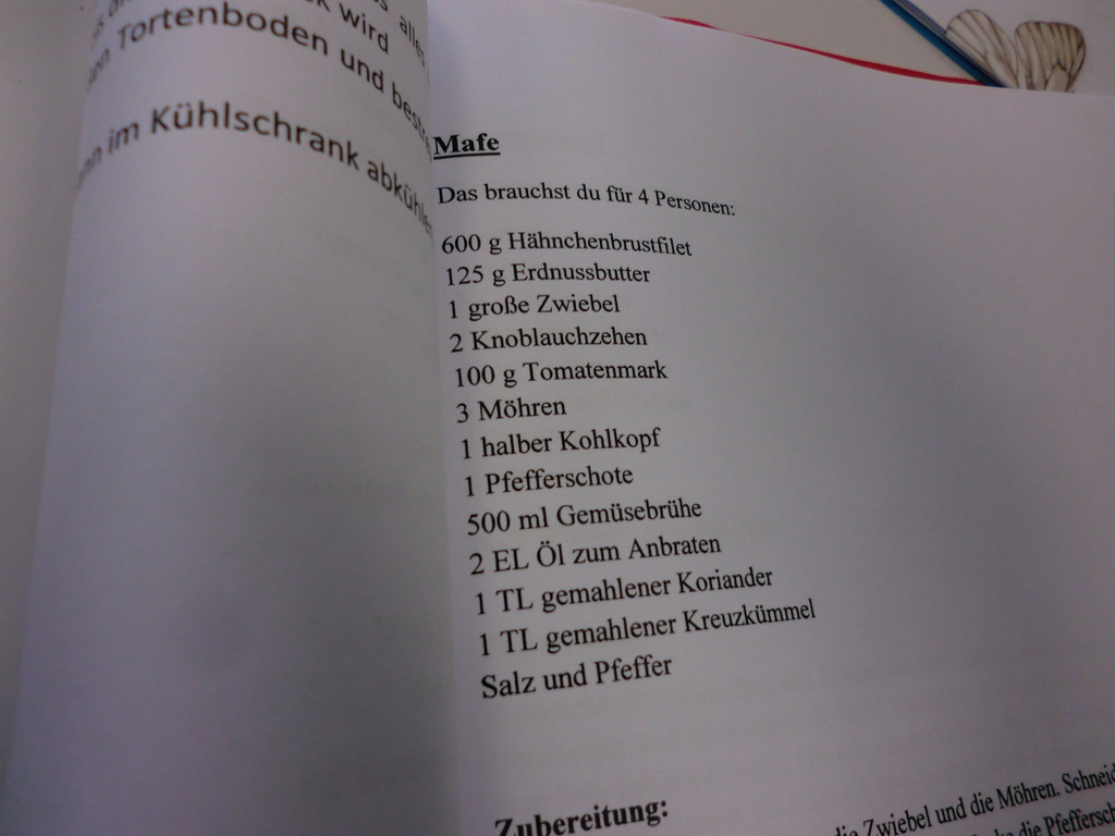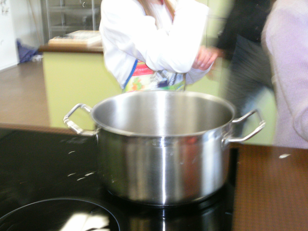 Als wir reinkamen, haben sie etwas über die Stadt Marokko gelernt. Dann haben sie in Gruppen gearbeitet bzw. gekocht. Die Lehrer hatten wohl sehr viel vertrauen, denn sie durften mit sehr scharfen Messern arbeiten. Außerdem durften sie mit dem heißen Herd kochen. Sie arbeiteten mit Panik und liefen hektisch hin und her. Die Lehrer achteten sehr darauf, dass alles ordentlich gemacht wird. Damit die Kinder wussten wo die Materialien sind, waren die Schränke beschildert. Wir fragten am Ende die Kinder ob wir ein Rezept bekommen. Zum Schluss hatten wir aber sogar 5 Rezepte.