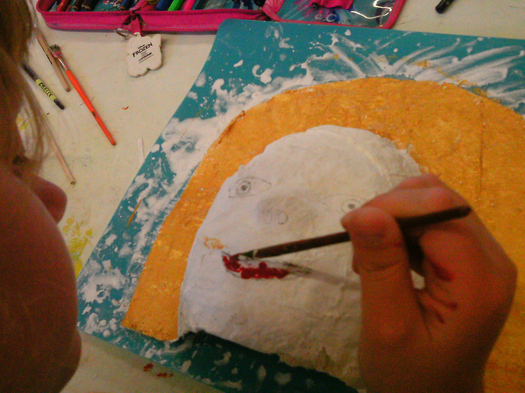 Salma arbeitet schon 2 Tage an ihrer Maske. Sie musste sie 20 Minuten tragen.
