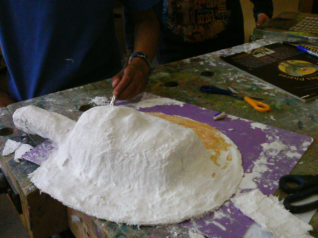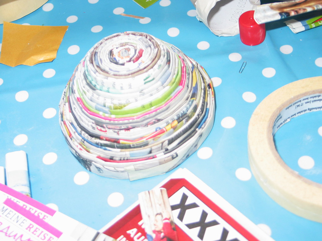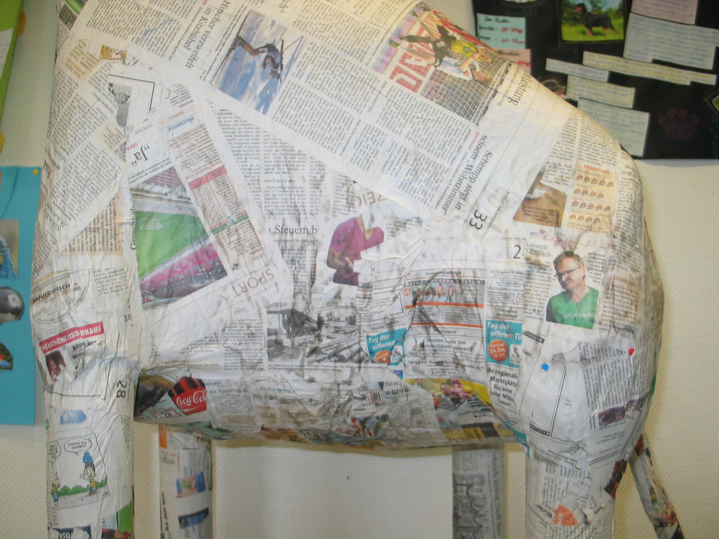 Philipp hat schon eine Maske gemacht. Sie muss nur noch trocknen.