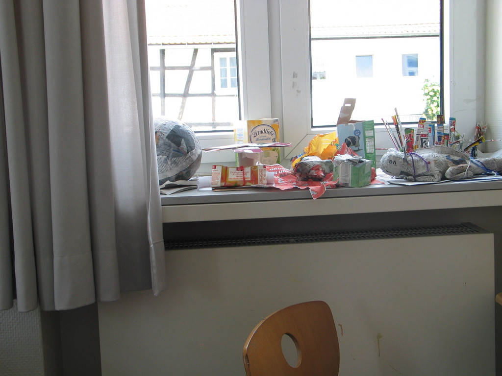 Auf der Fensterbank lag auch noch Afrikanischer Schmuck und geschnitzte Holzfiguren.