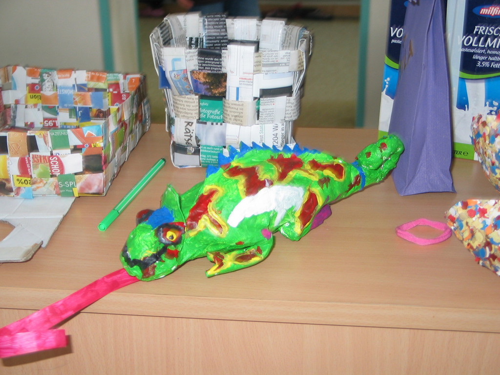 Dort kann man Portemonaies, Taschen, Töpfchen, Körbe und Tiere basteln.