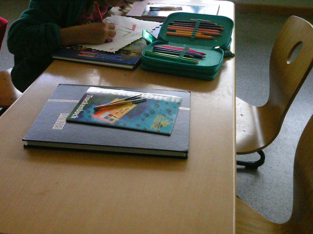 Als Svea und Ich (Lena) ins Projekt "Kreatives mit Papier" gegangen sind, hat Frau Folville uns begrüßt.