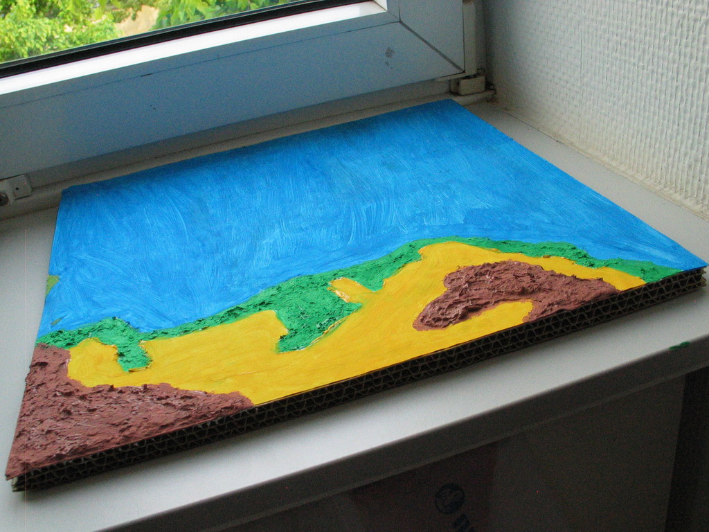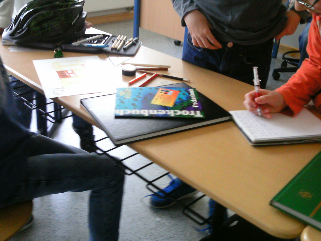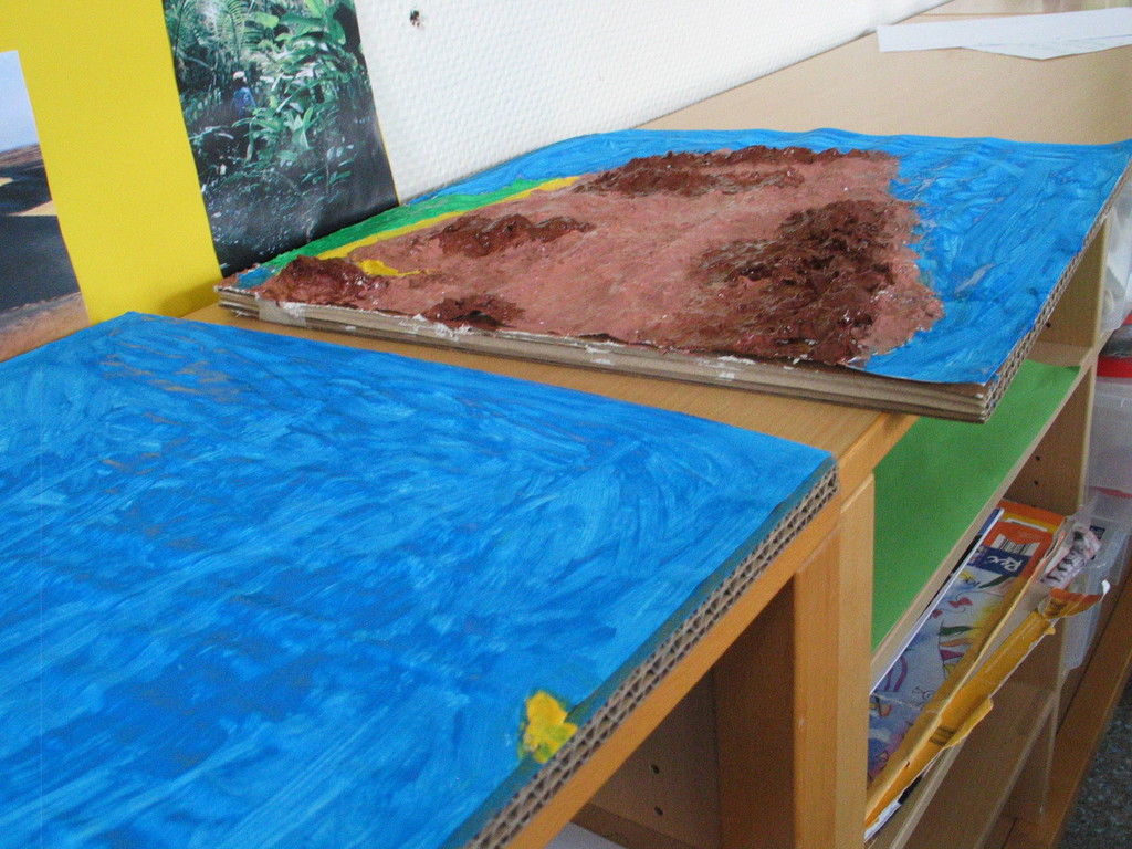 Als wir hereinkamen sahen wir, dass alle Gruppen an einer kleinen Landkarte gearbeitet haben, die später eine große Landkarte wird.