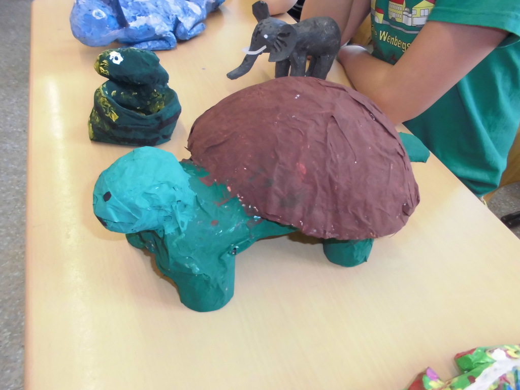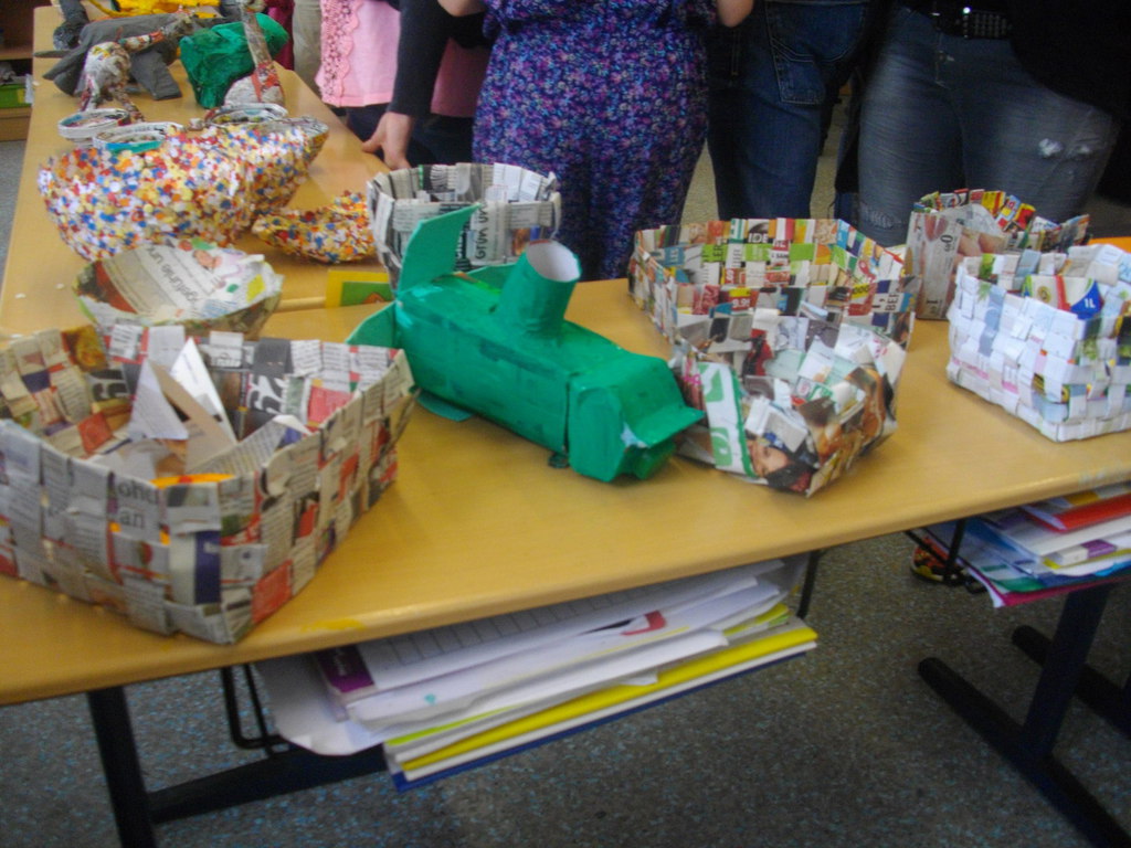 Die Kinder bestaunen die Ergebnisse der anderen Gruppen. Es sind viele tolle, bunte Dinge entstanden. Auch die Aufführungen hatten viele Besucher.