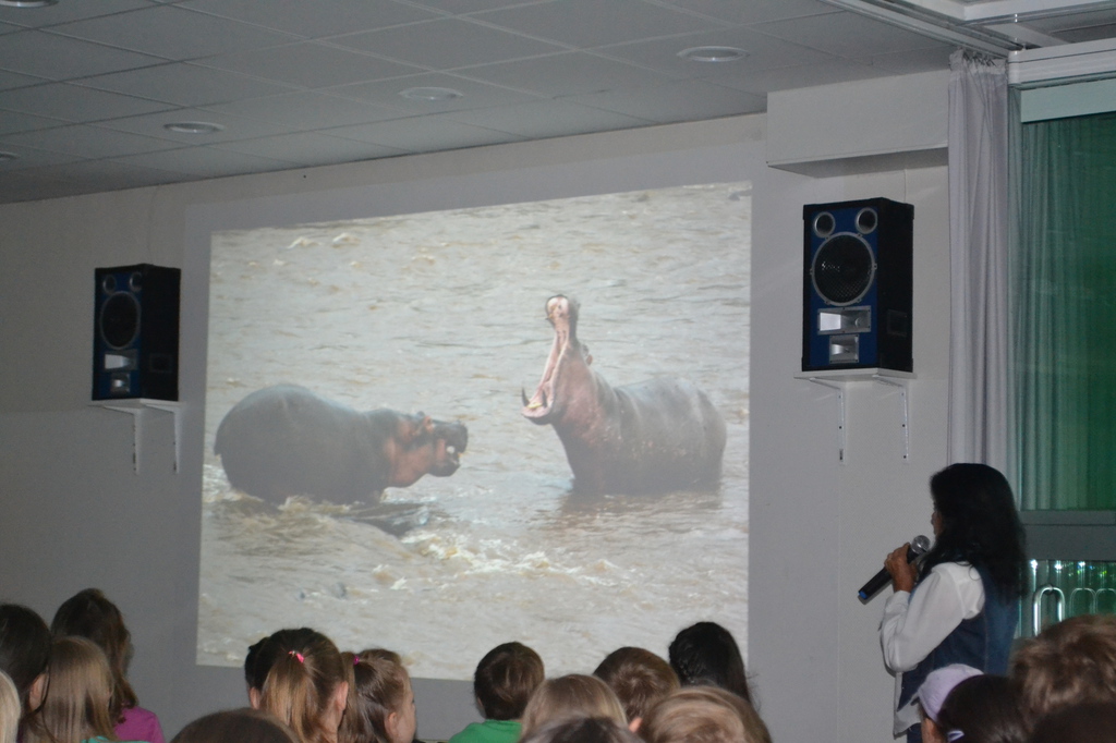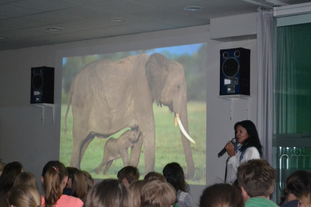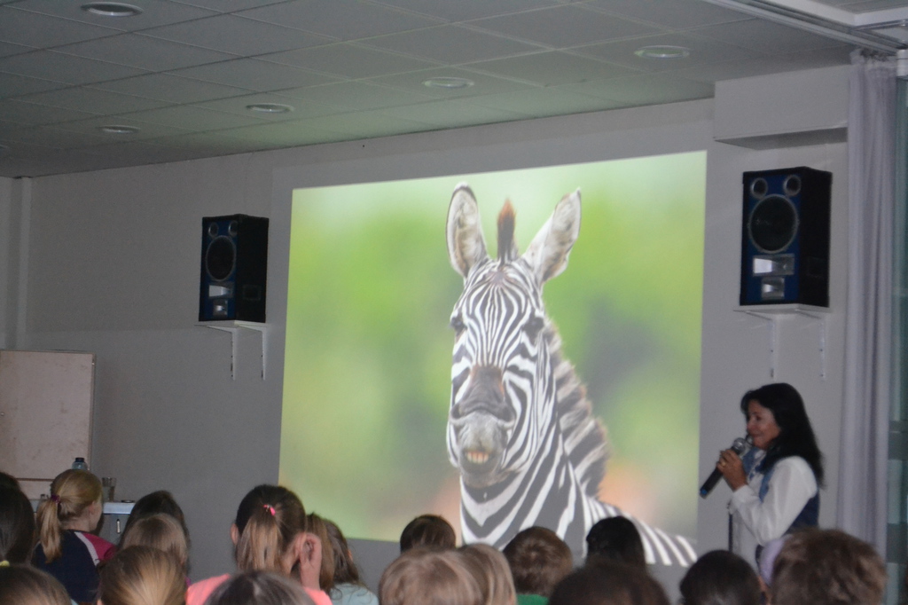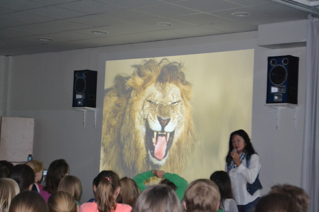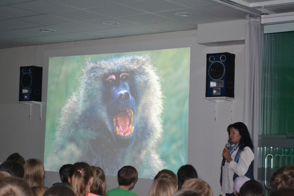 Da haben wir noch mitbekommen, dass es momentan um Hyännen ging. Sie hat erzählt, dass als sie in Afrika war, ganz viele Hyänen vor ihrem Zelt waren und deshalb soll man immer das Zelt zu machen wenn man momentan nicht drin ist. Sie hat auch noch ganz viel von Tieren erzählt. Und zwar folgendes: